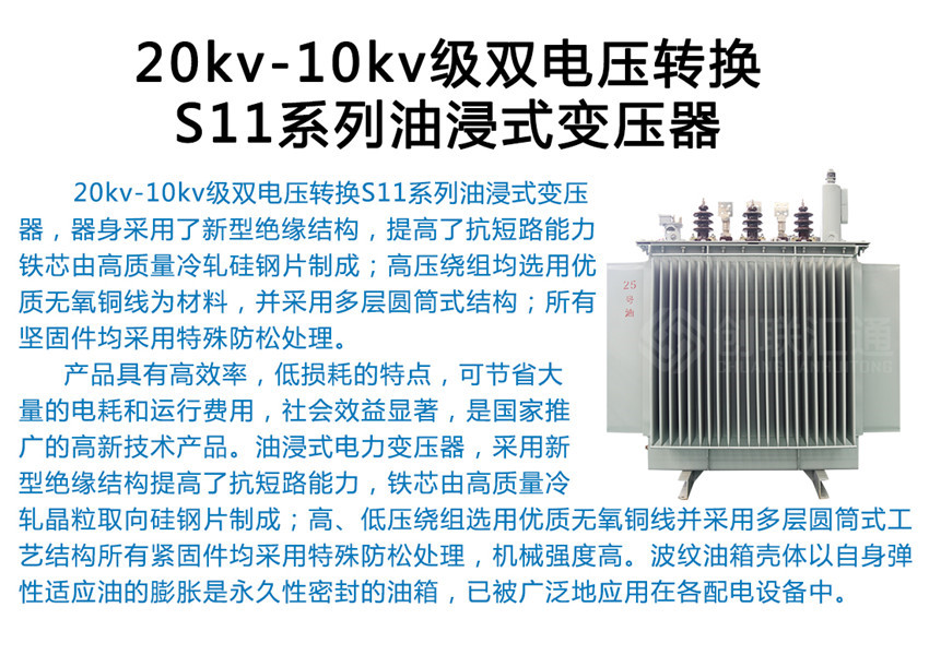 我公司生產(chǎn)的三相油浸式配電變壓器,器身采用了新型絕緣結(jié)構(gòu),提高了抗短路能力;鐵芯由高質(zhì)量冷軋硅鋼片制成;高壓繞組均選用優(yōu)質(zhì)無氧銅線為材料,并采用多層圓筒式結(jié)構(gòu);所有堅固件均采用特殊防松處理。